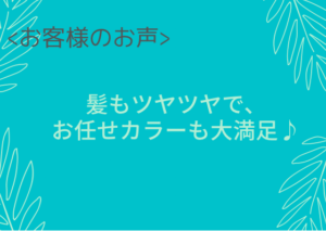 〈お客様からのお声〉髪もツヤツヤで、お任せカラーも大満足!