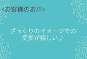 〈お客様からのお声〉ざっくりのイメージで、提案してくれるのが嬉しい!
