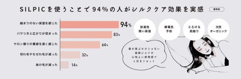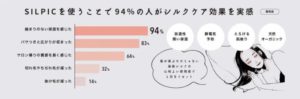SILPICの枕を使うことで94%の人がシルクケア効果を実感