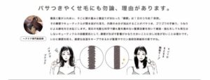 寝具と髪がふれ合い、そこに頭の重みと寝返りが加わった「摩擦」は1日のうち約7時間。その摩擦でキューティクルが開き剥がれ落ち、内側の水分が流出することがパサつき、ゴワゴワの手触り、うねりによる癖毛を引き起こします。