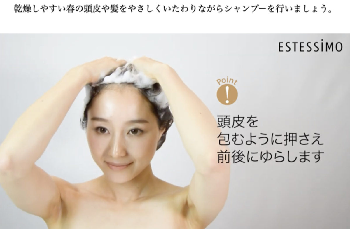 頭皮をマッサージしながら