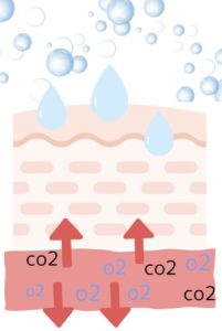 炭酸泉に浸かることで、皮膚科から吸収された炭酸(二酸化炭素)は毛細血管へと入り込み一時的に酸欠にすることで血流を促進させます。この血行促進効果がすごいんです。毛細血管を1.5倍程に拡張し、血流を2〜3倍にします!ここまでの血行促進効果はただ温めただけでは叶いません。実際に普通のお湯を沸かしたお風呂と炭酸泉では同じ温度でも体感温度が2℃炭酸泉の方が高いと言われています。