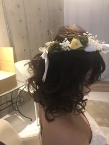 フワフワのハーフアップに、花かんむりの