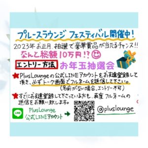 お年玉抽選会★PlusLoungeFESTIVALフェスティバル☆ エントリー募集してます! 【原宿表参道の女性スタッフのみのサロン】
