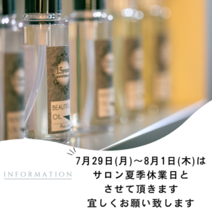 7月のスタッフ&スタッフスケジュールのお知らせ 原宿・表参道の女性スタッフのみの美容室プルースラウンジ