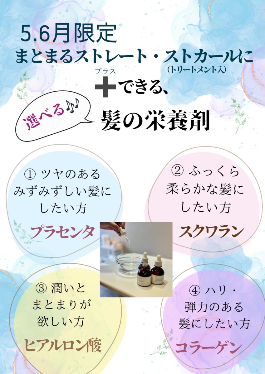 【5月・6月まとまるストレート/ストカールを施術された方の特典!】