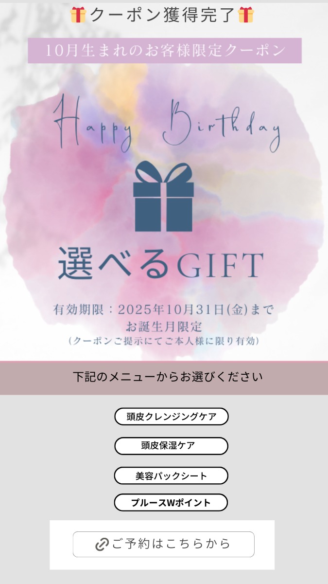 <10月のお誕生月の方へ選べる特典プレゼント> 原宿・表参道の女性スタッフのみの美容室プルースラウンジ