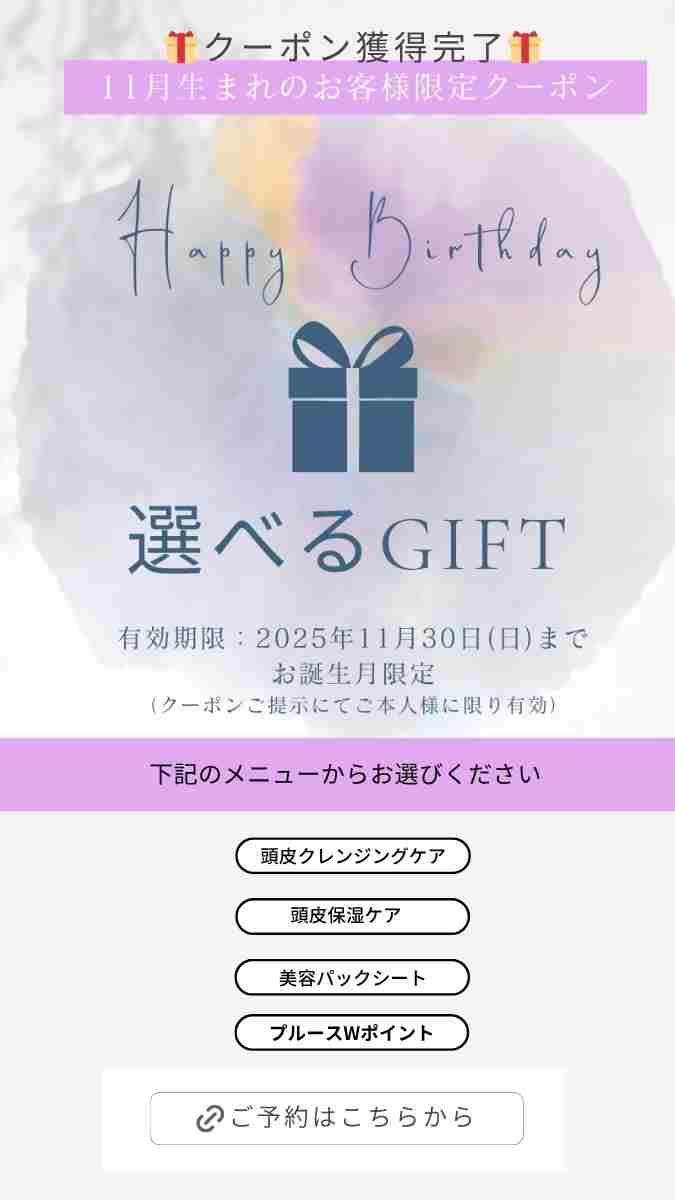 <11月のお誕生月の方へ選べる特典プレゼント> 原宿・表参道の女性スタッフのみの美容室プルースラウンジ