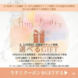 【4月限定特典】ご好評につき継続決定!炭酸泉チケット特典&4月お誕生日のお客様へ「選べるGIFT」のご案内 原宿・表参道の女性スタッフのみの美容室プルースラウンジ